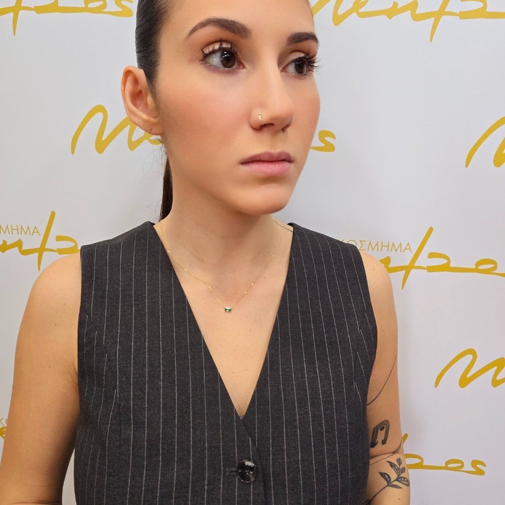 Mενταγιόν απο χρυσό κ14 με συνθετικο σμαράγδι 6mm X 3mm