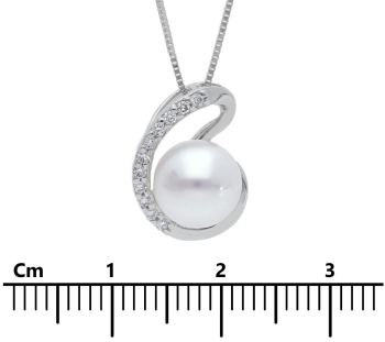 Μενταγιόν απο λευκόχρυσο κ18 με μπριγιαν 0.090ct SI/G & μαργαριτάρι Ø 7.5-8 mm. Στην τιμη συμπεριλαμβάνεται η αλυσίδα Κ18, 45cm