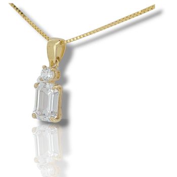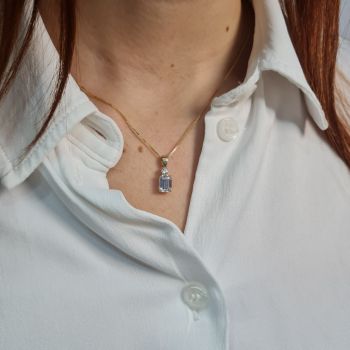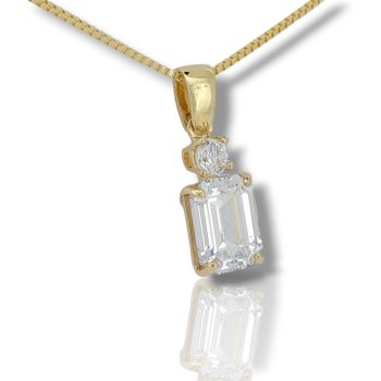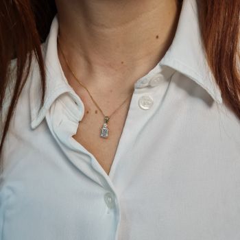 xρυσό μενταγιόν με την κεντρική πέτρα καρέ λευκό ζιργκόν και μικρά στρογγυλά λευκά ζιργκόν. Στην τιμη συμπεριλαμβάνεται η αλυσίδα Κ14, 45cm