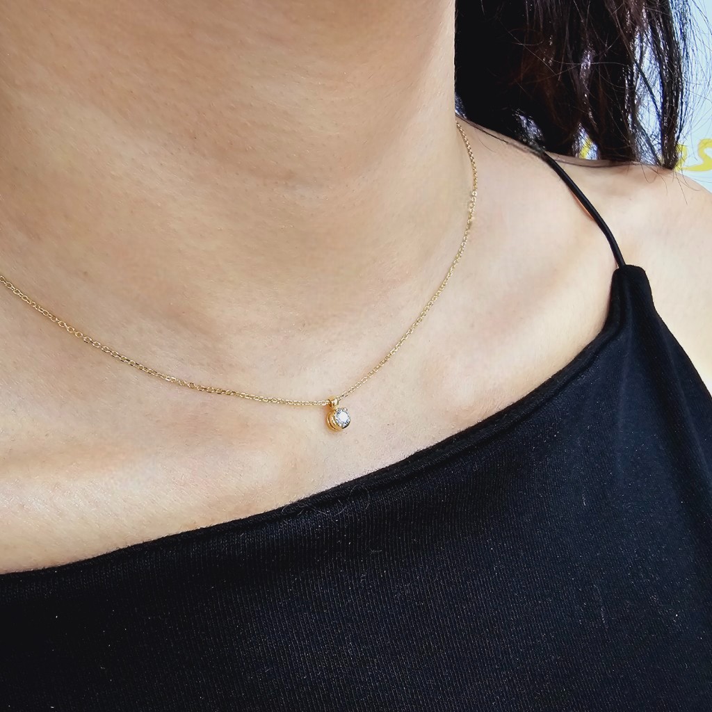 Μενταγιόν μονόπετρο με μπριγιάν 0.15ct SI / G. Στην τιμη συμπεριλαμβάνεται η αλυσίδα Κ14, 45cm