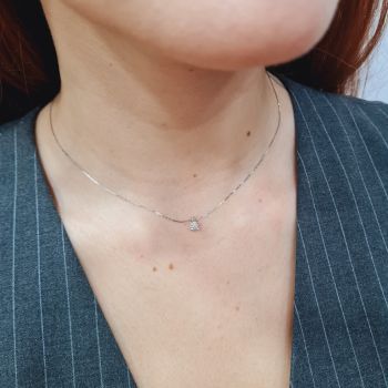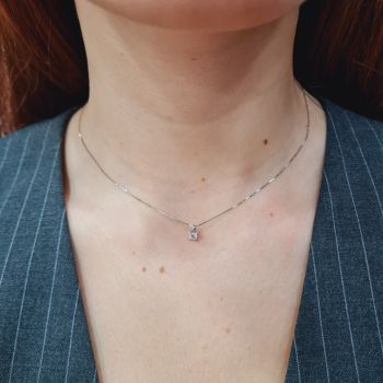 Μονόπετρο μενταγιόν απο λευκό χρυσό κ18 με διαμάντι σε τετράγωνο καστόνι (code T2691)