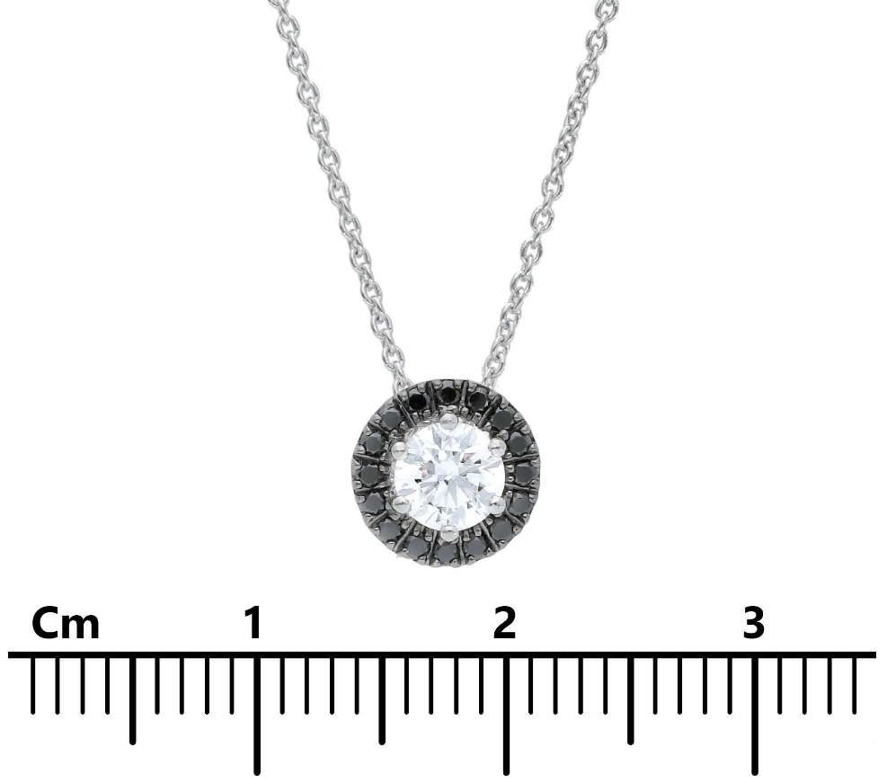 Μενταγιόν μονόπετρο με μπριγιάν 0.74ct VS/G & 0.10ct BLACK. Στην τιμη συμπεριλαμβάνεται η αλυσίδα Κ18, 45cm