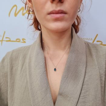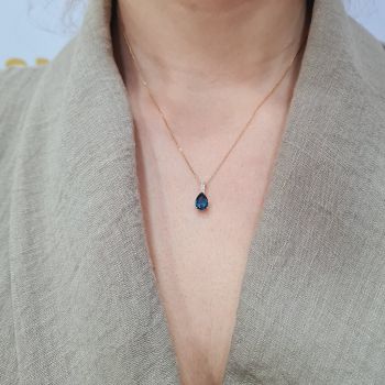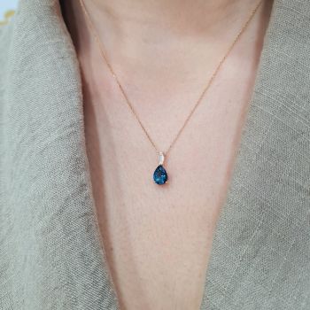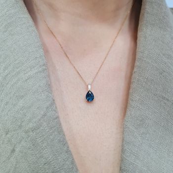 Μενταγιόν με μπριγιάν F/ VS ct 0.070 & London blue topaz 1.10ct . Στην τιμη συμπεριλαμβάνεται η αλυσίδα Κ18, 45cm