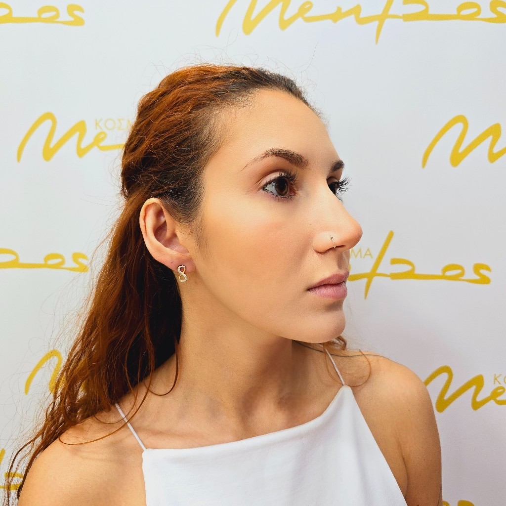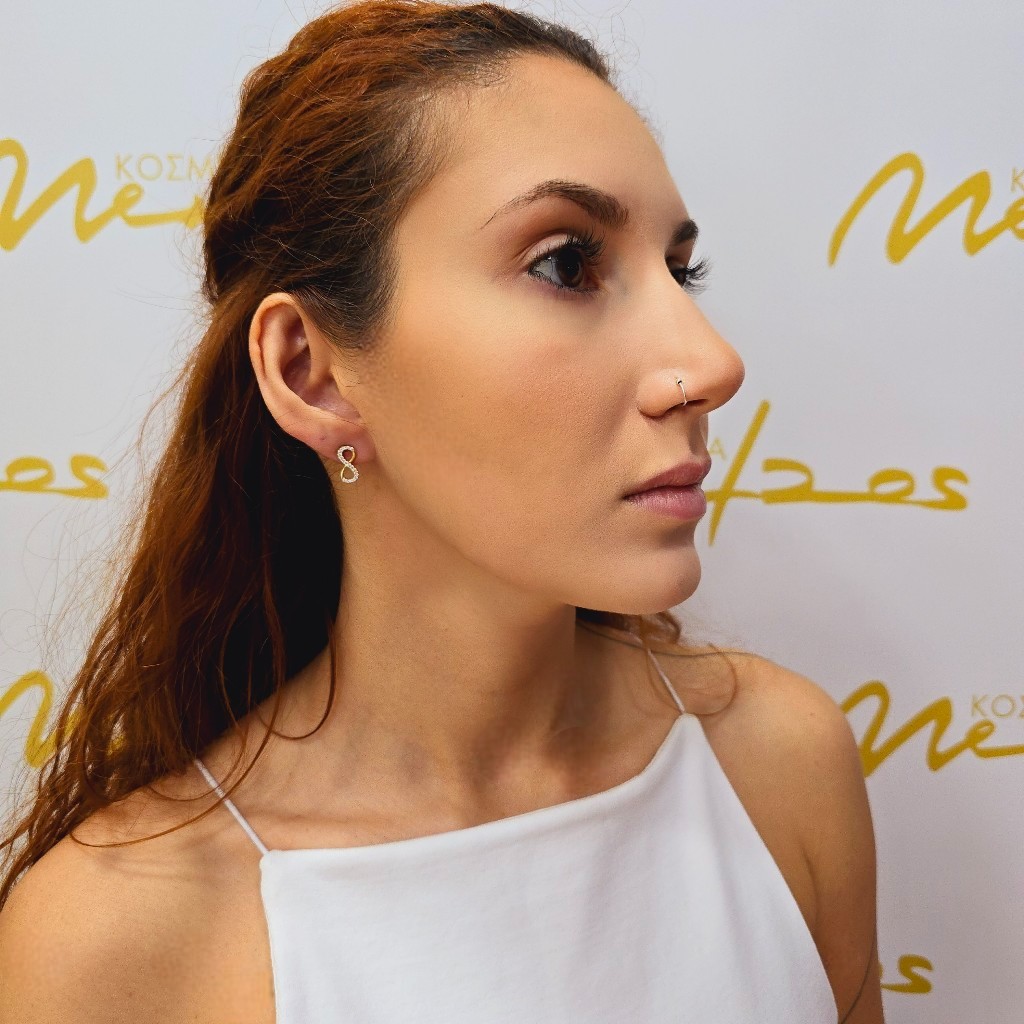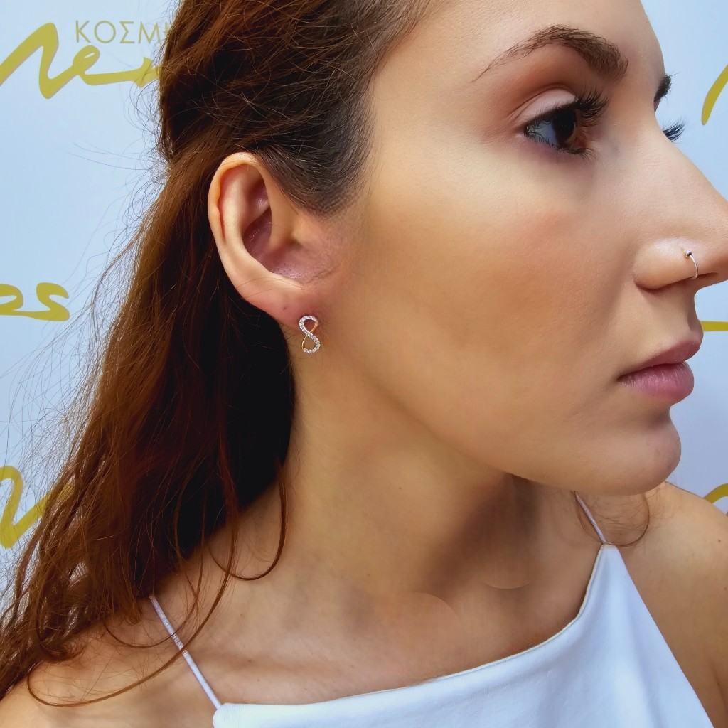Χρυσά σκουλαρίκια άπειρο κ9 με λευκό ζιργκόν (code S214015)