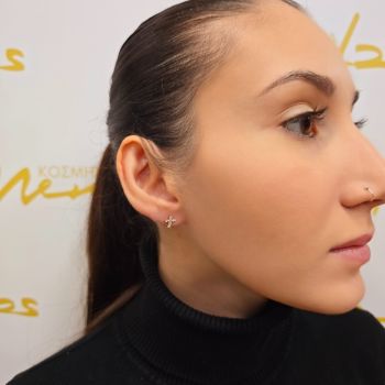 Χρυσά σκουλαρίκια Σταυρός κ14 με λευκά ζιργκόν (code S210360)