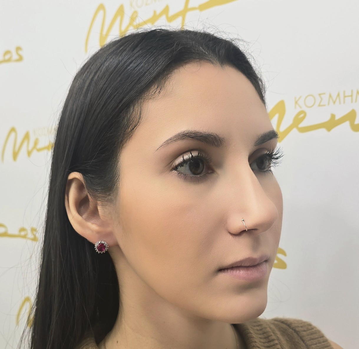 Λευκόχρυσα σκουλαρίκια Κ9 σε σχέδιο ροζέτας, διακοσμημένα με ένα εντυπωσιακό συνθετικό ρουμπίνι σε οβάλ κοπή στο κέντρο. Γύρω του αγκαλιάζουν λαμπερά λευκά ζιργκόν, προσδίδοντας διαχρονική κομψότητα και μοναδική λάμψη. Ένα ζευγάρι σκουλαρίκια που συνδυάζει κλασικό στυλ και σύγχρονη φινέτσα, ιδανικό για καθημερινή αλλά και βραδινή εμφάνιση.