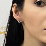 Λευκόχρυσα σκουλαρίκια κ9 ροζέτα με συνθετικό σμαράγδι & λευκά ζιργκόν (code S287554)
