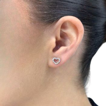Σκουλαρίκια καρδούλες απο λευκό χρυσό Κ9 με καρφωμένα ζιργκόν (code S222120)