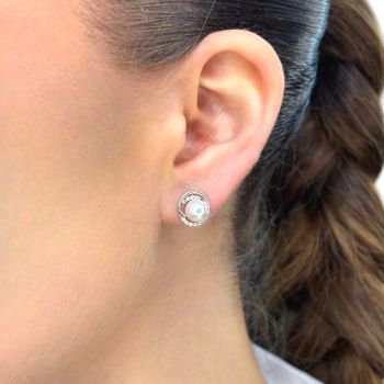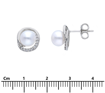 Λευκόχρυσα σκουλαρίκια κ9 με μαργαριτάρια & ζιργκόν (code S173611)