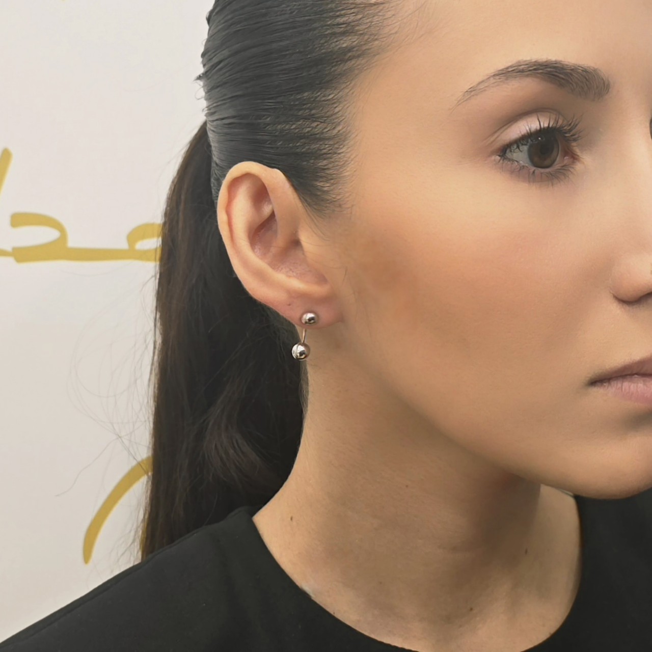Μίνιμαλ αλλά εντυπωσιακά, αυτά τα λευκόχρυσα σκουλαρίκια με διπλή σφαίρα προσφέρουν μια μοντέρνα εκδοχή της διαχρονικής κομψότητας. Eίναι κομψά και κατάλληλα τόσο για καθημερινή χρήση όσο και για ιδιαίτερες περιστάσεις.