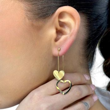 Χρυσά σκουλαρίκια καρδιές κ14 (code S245974)