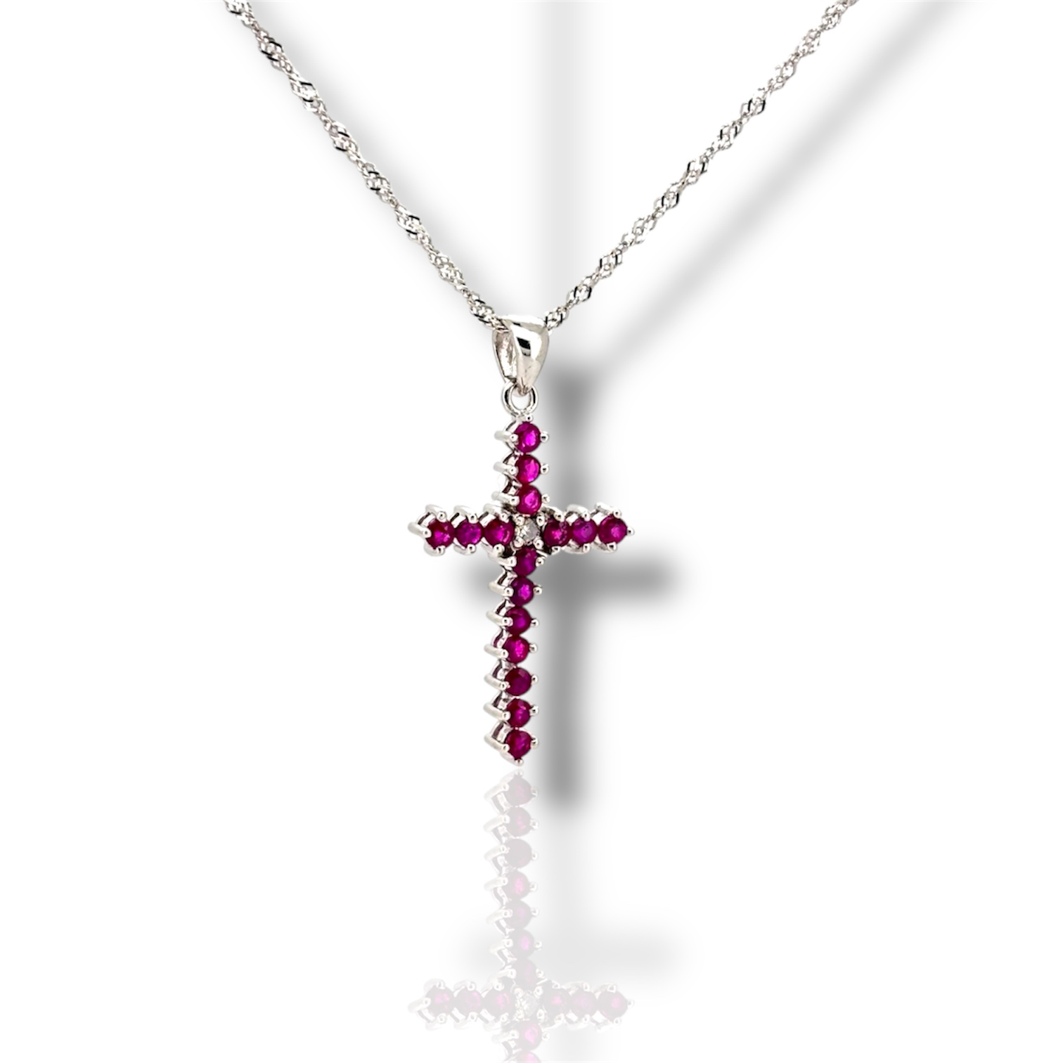 Σταυρός & Αλυσίδα από Λευκόχρυσο 18Κ με Ρουμπίνια (code M10250)