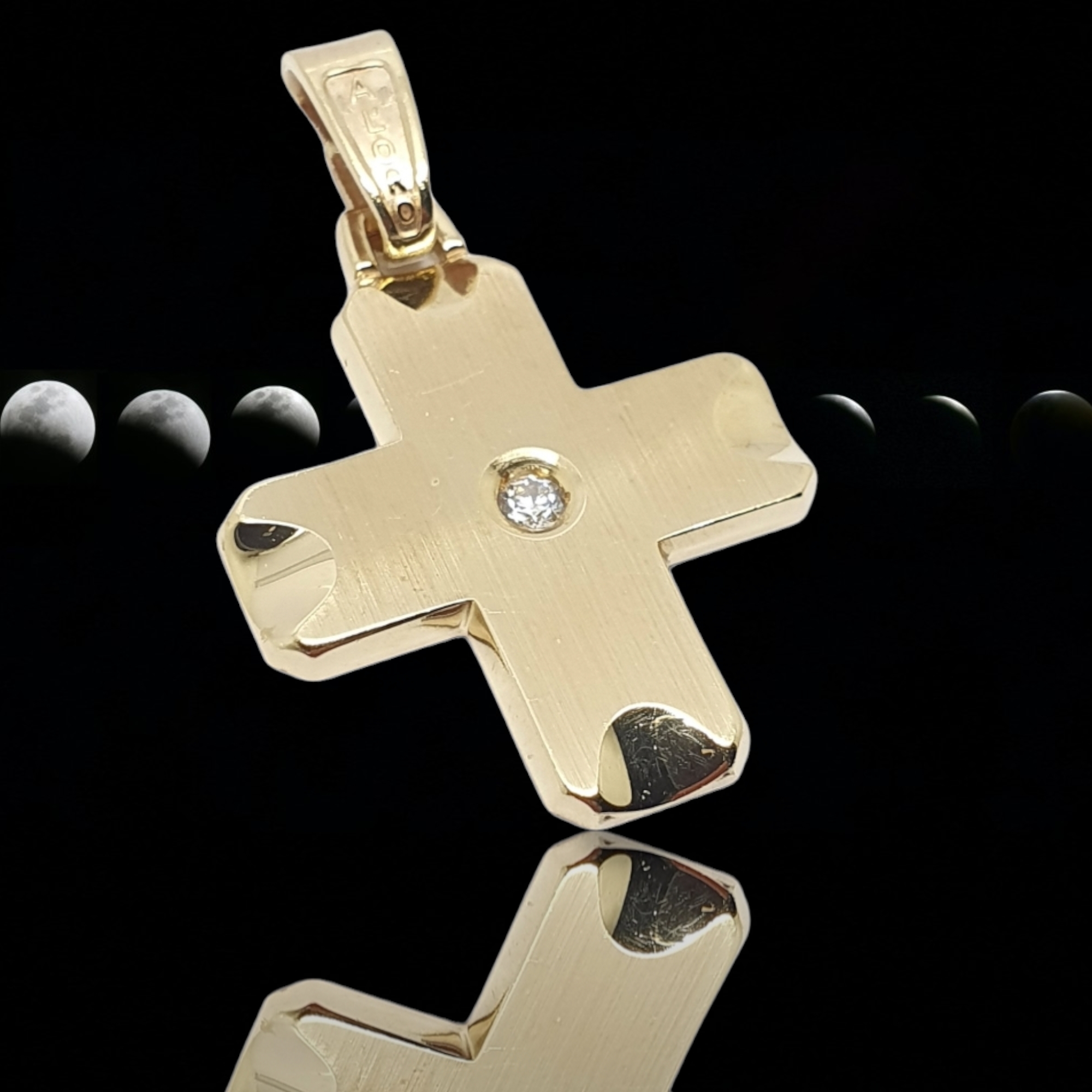 Σταυρός απο ματ χρυσό κ14 με ζιργκόν καρφωμένο στο κέντρο χωνευτά (code H2131)