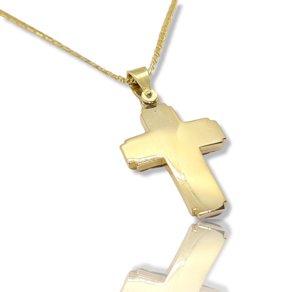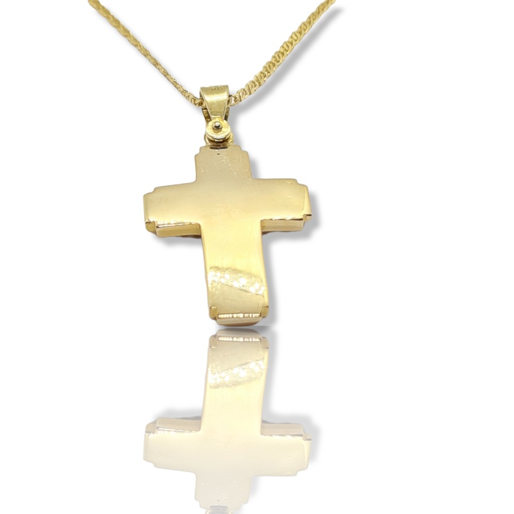 Σταυρός απο χρυσό K14 δύο όψεων με αλυσίδα (code H2358)