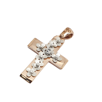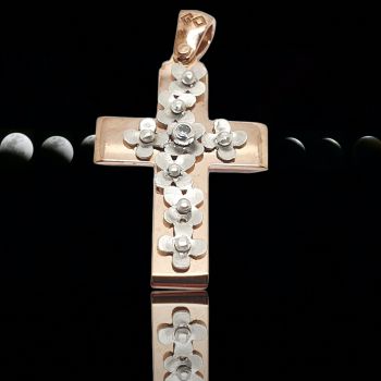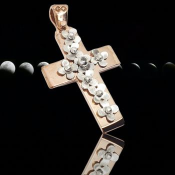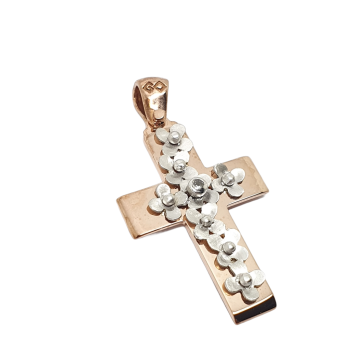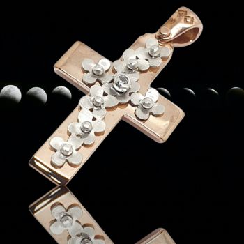 Σταυρός απο ροζ χρυσό με λουλουδάκια απο λευκόχρυσο.