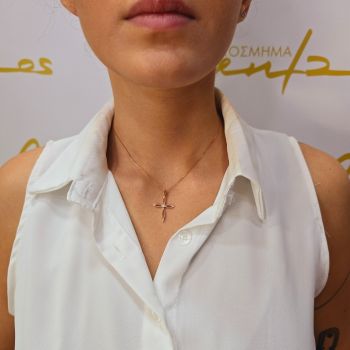 Σταυρός (με αλυσίδα) απο ροζ χρυσό κ14 με διαμάντι στο κέντρο καρφωμένο σε καστόνι (code P2360)
