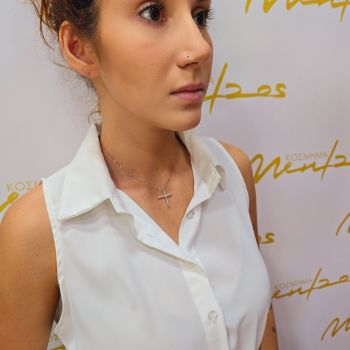 Σταυρός slim απο λευκόχρυσο κ14 με ζιργκόν (code P2531)