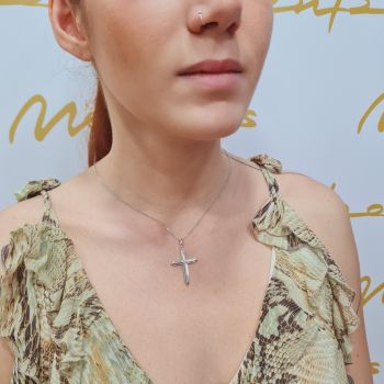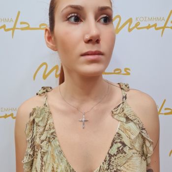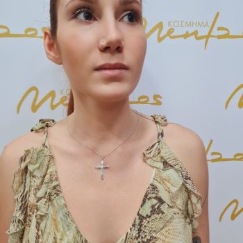 Σταυρός απο λευκόχρυσο κ18 με μπριγιάν 0.13ct. Στην τιμη συμπεριλαμβάνεται η αλυσίδα 45cm