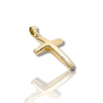 Χρυσός σταυρός κ14 με καρφωμένα ζιργκόν στην πλαϊνή πλευρά (code H1714)