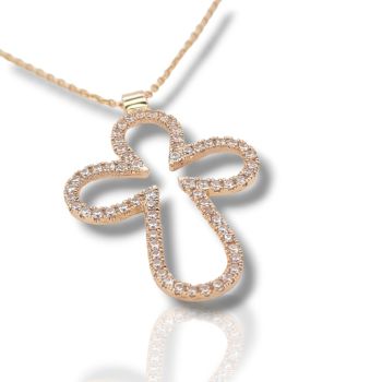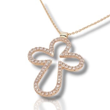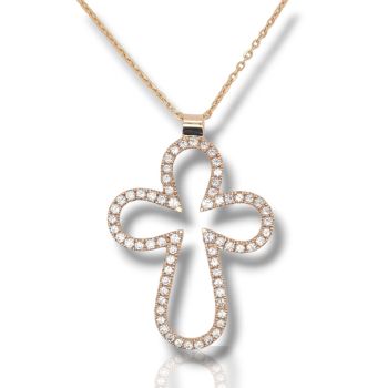 Σταυρός (με αλυσίδα) περίγραμμα απο ροζ χρυσό κ14 με ζιργκόν (code H1725)
