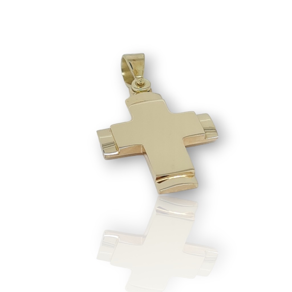 Σταυρός λουστράτος απο χρυσό κ14 με κοψίματα στις τέσσερεις άκρες (code H1882)