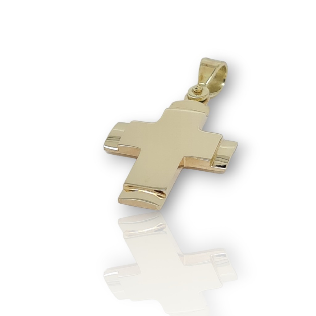 Σταυρός  λουστράτος απο χρυσό κ14 με κοψίματα στις τέσσερεις άκρες (code H1882)