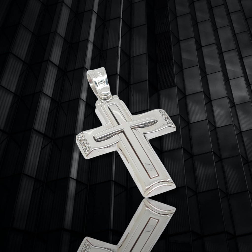 Λευκόχρυσος σταυρός κ14 με φαλτσογωνιές και ενσωματωμένο λεπτό λευκόχρυσο σταυρουδάκι κ14 (code H1878)