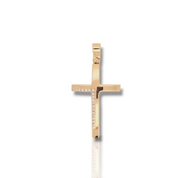 Σταυρός απο ροζ χρυσό κ14 με ζιργκόν καρφωμένα χωνευτά (code H1853)