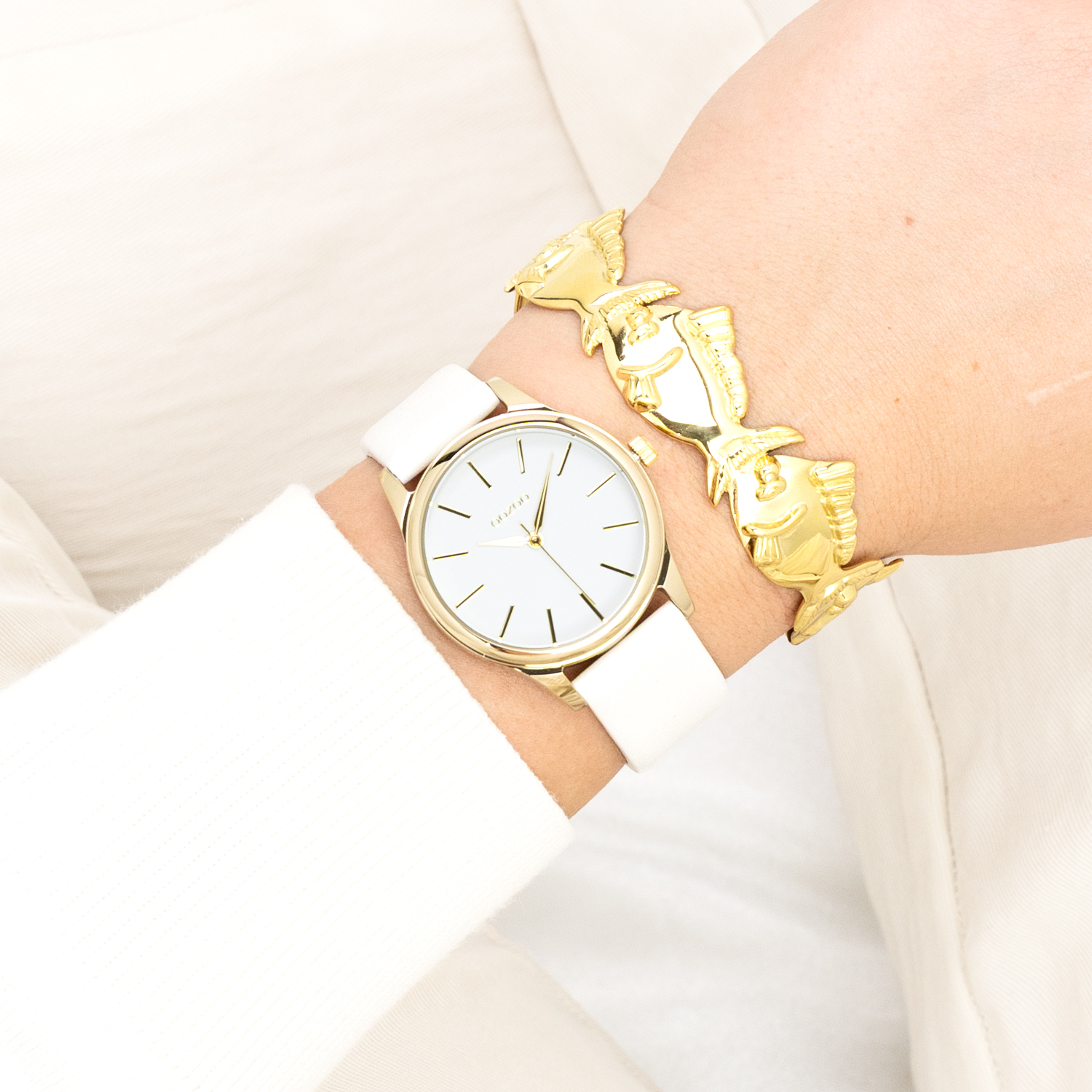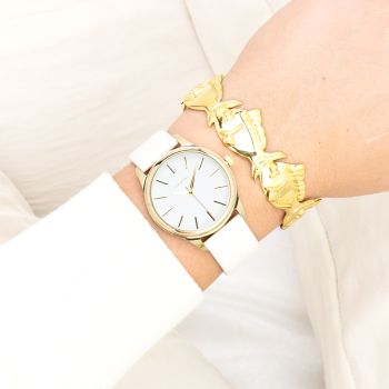Gold coloured OOZOO watch with white leather strap - C11675