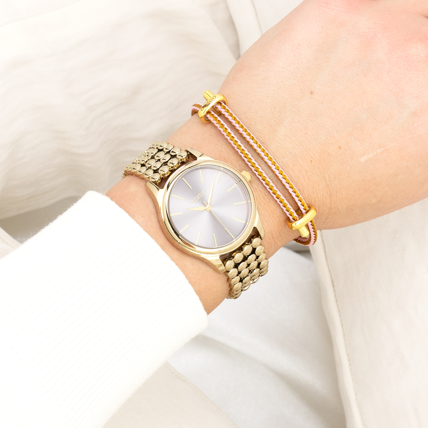 Gold coloured OOZOO watch with dot link bracelet - C11672
