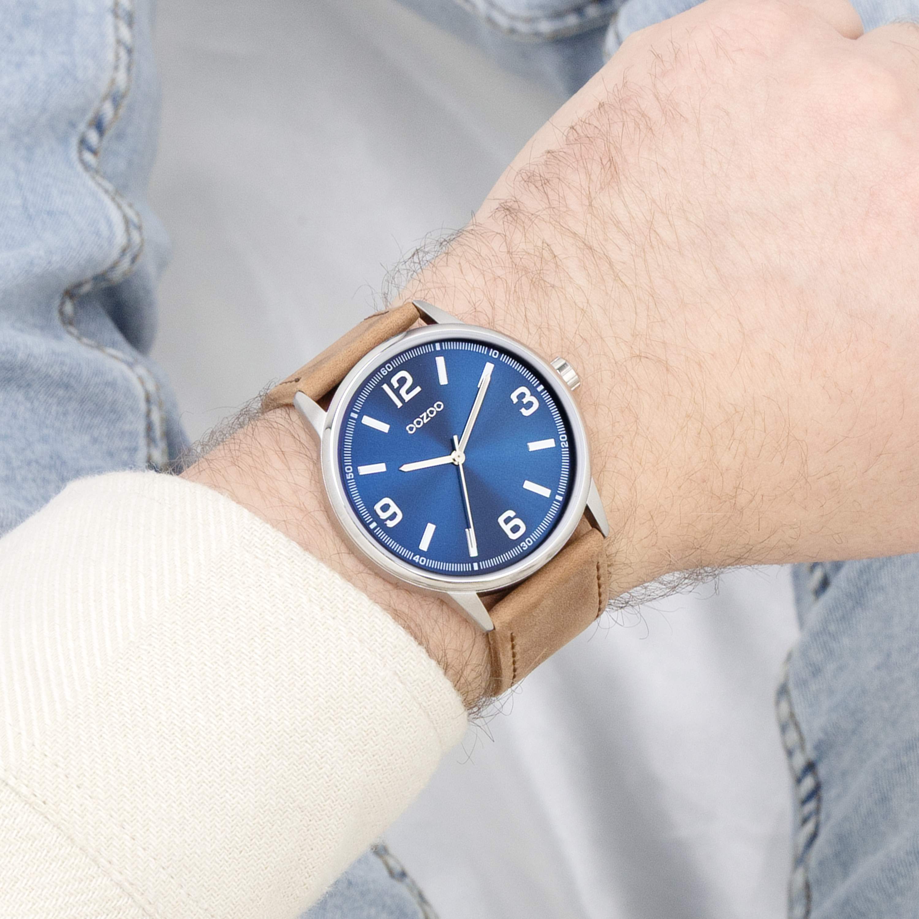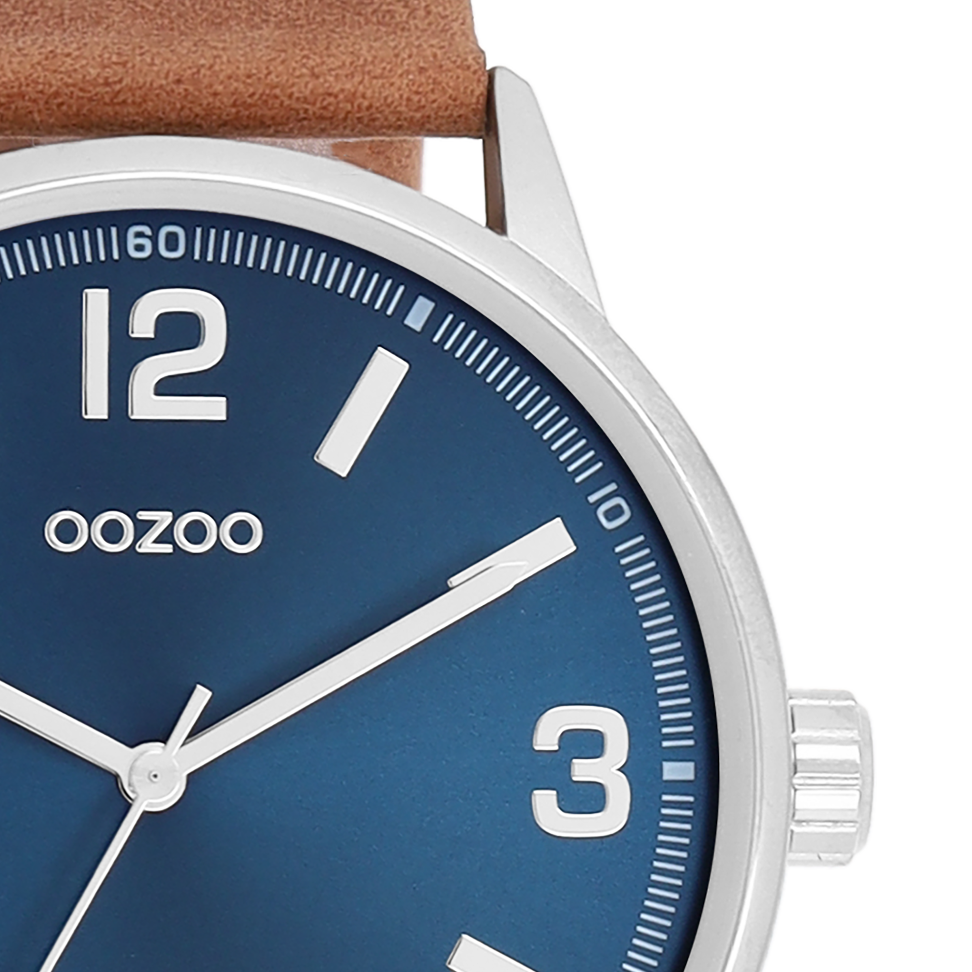 Silver coloured OOZOO watch with brown leather strap - C11501