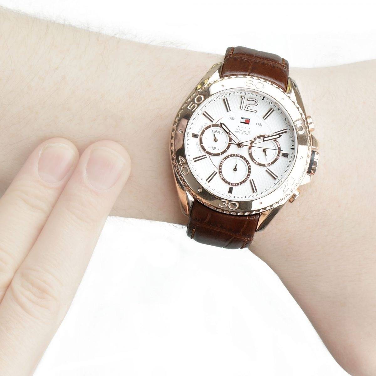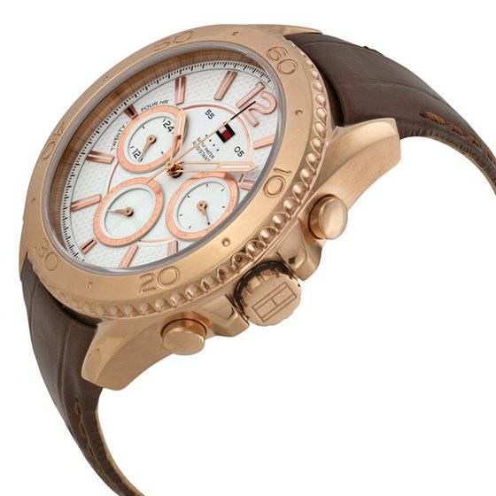 Tommy Hilfiger Ρολόι Χρονογράφος Μπαταρίας με Δερμάτινο Λουράκι σε Καφέ χρώμα